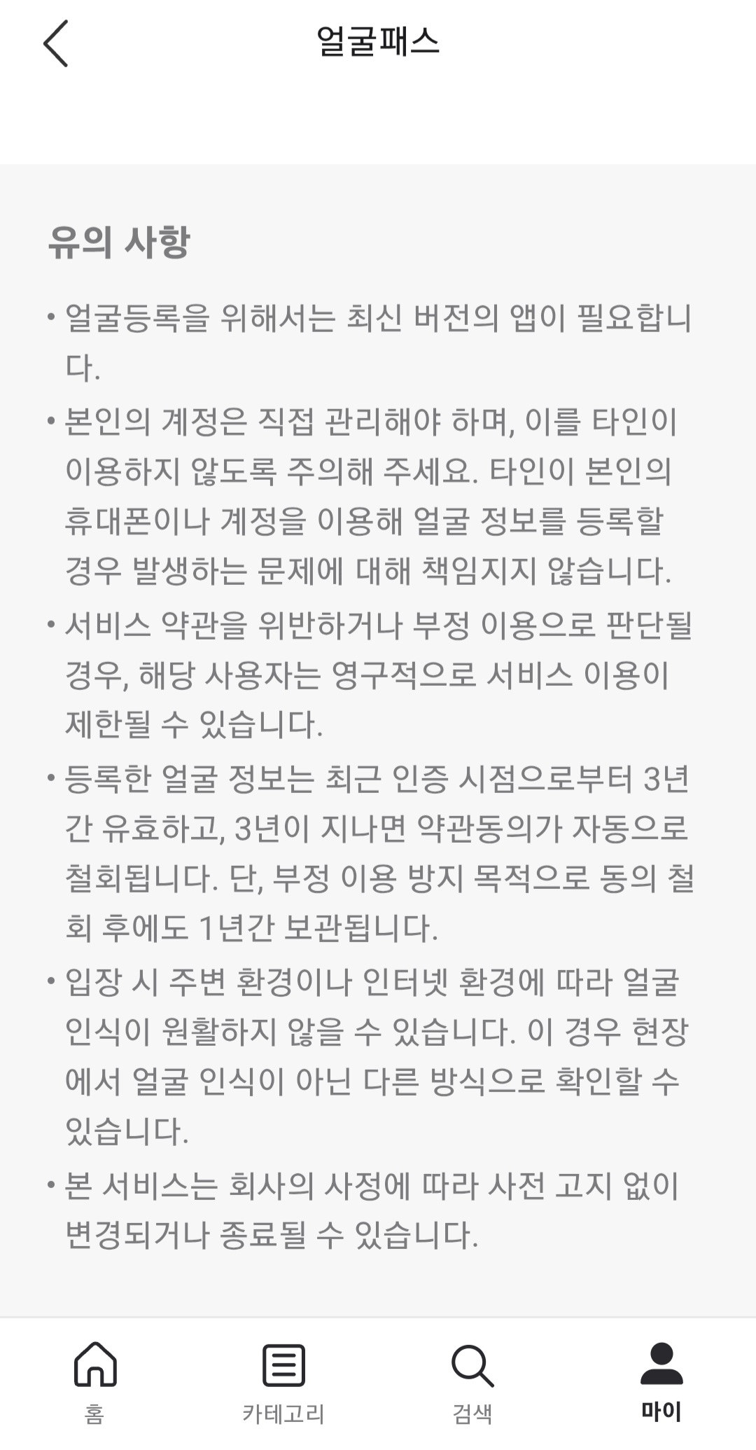 화장, 마스크 착용, 조명, 각도 등에 따라 얼굴 인식이 되지 않는 사례도 일부 존재하며, 입장이 지연되거나 다시 줄을 서야 할 수도 있어요.